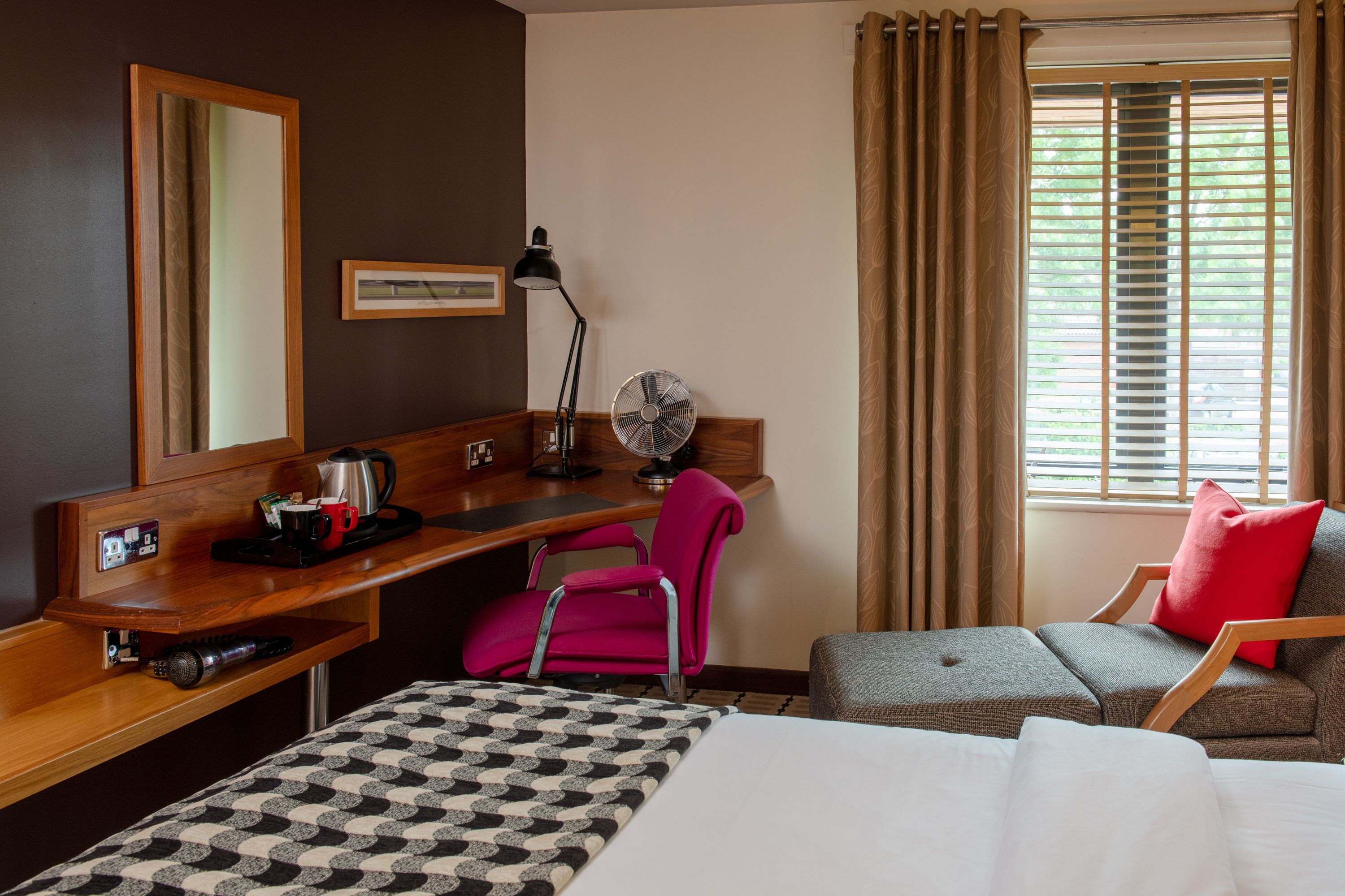 Desk in Lodge bedroom with tea station